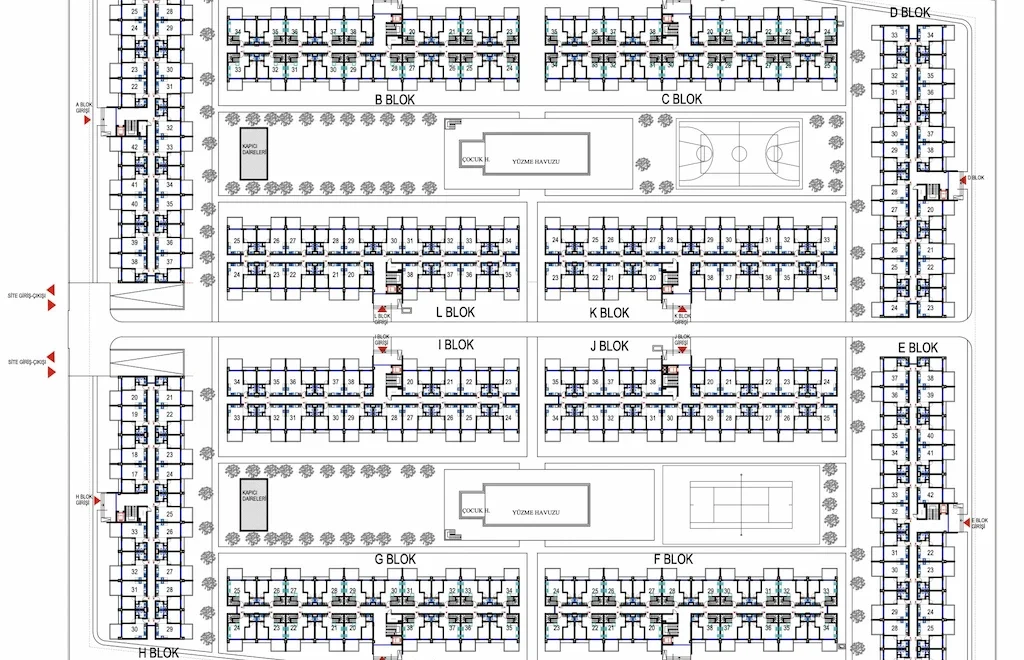 - Bloklar arasında ferah mesafe